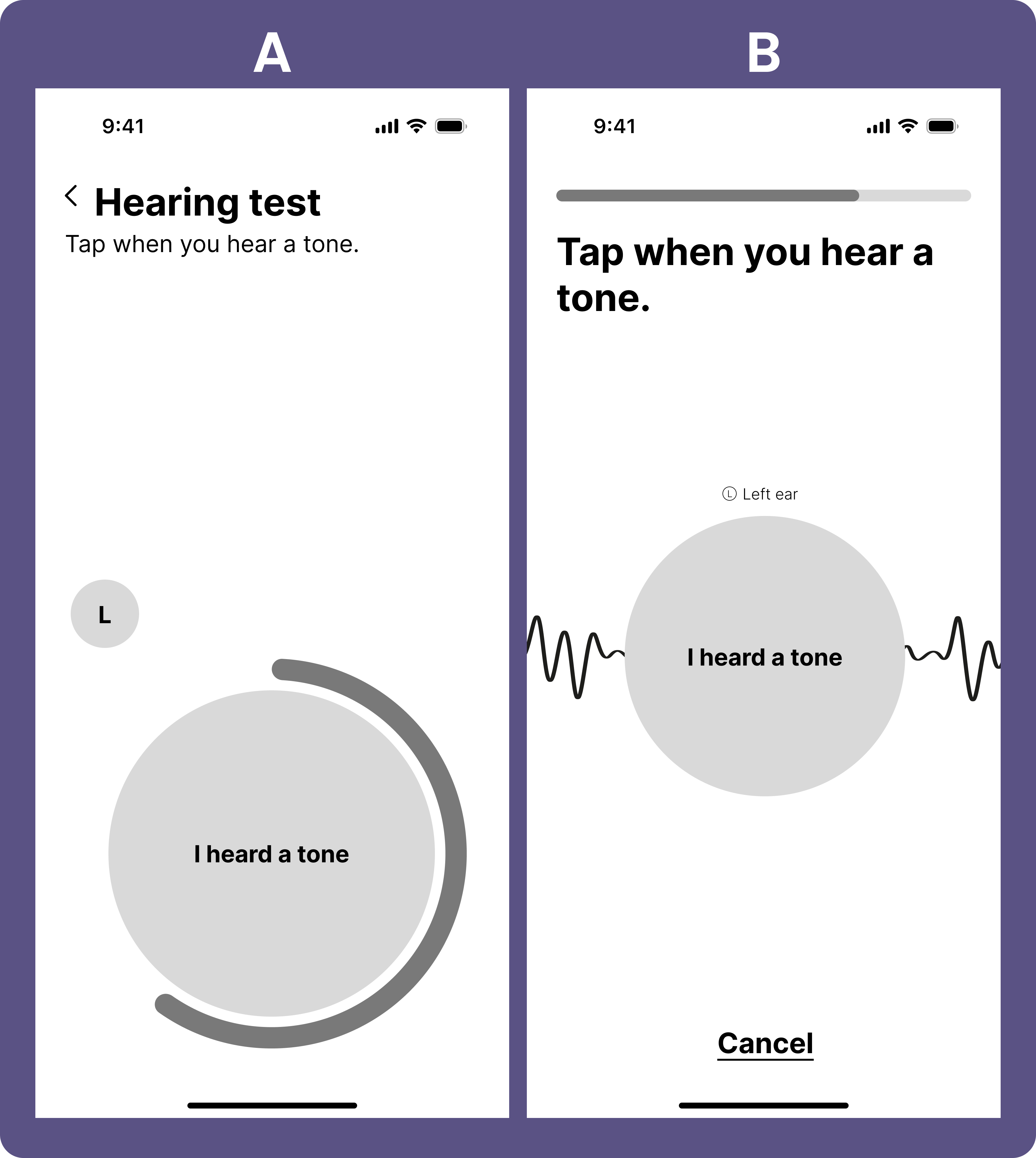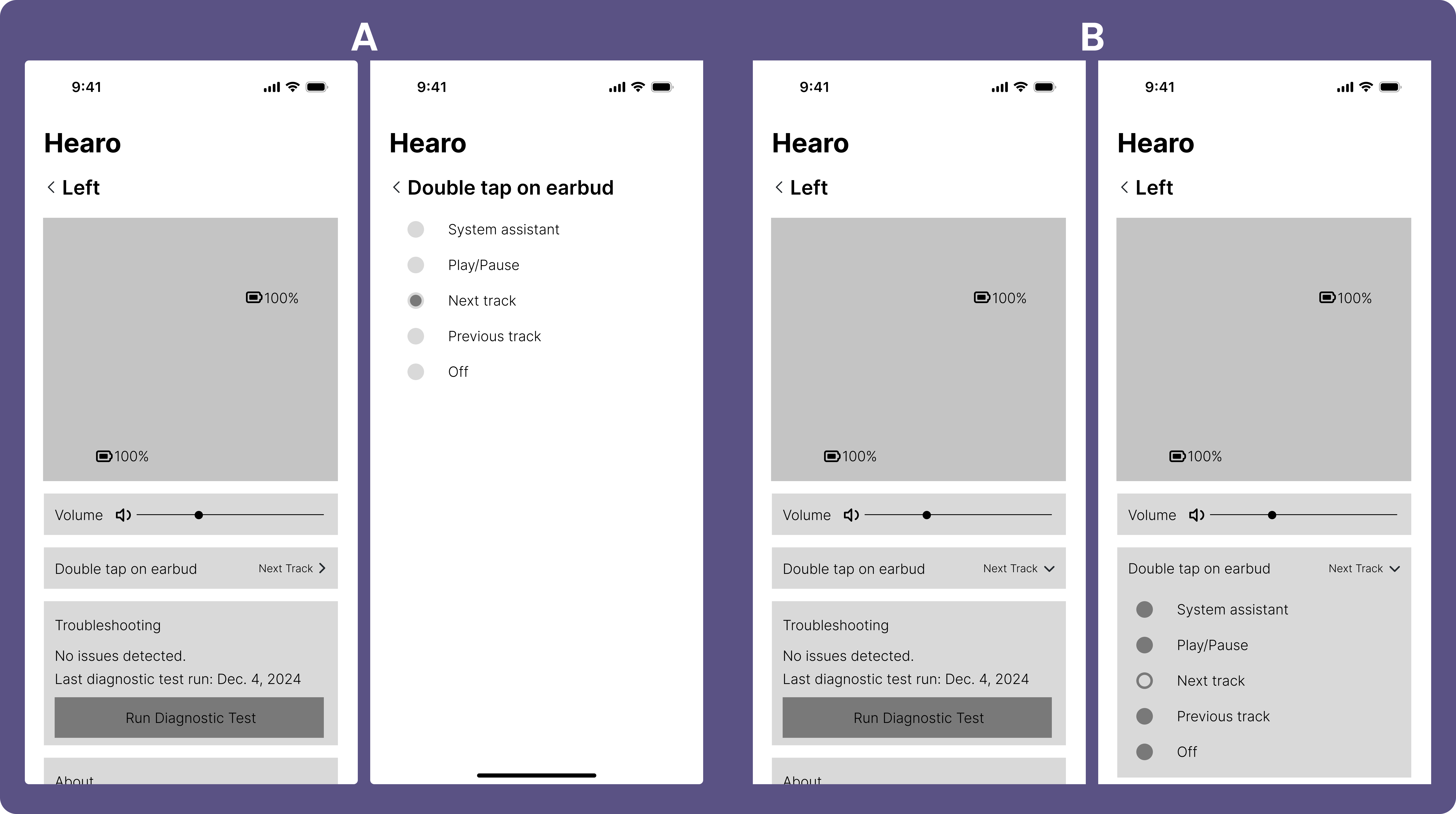 A/B testing conducted to improve app usability and interface clarity.